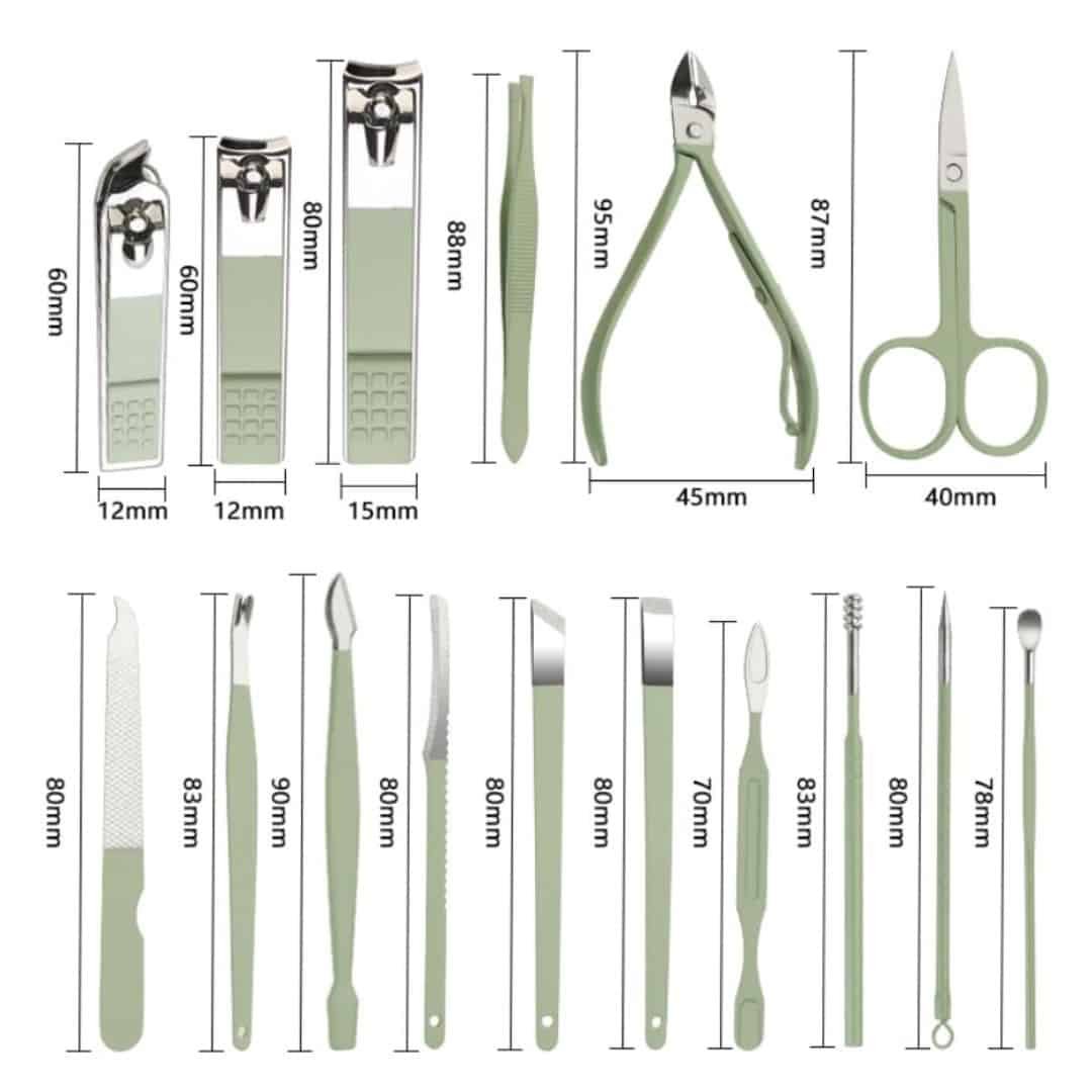 Tus manos y pies hablan de ti. Mantenerlos limpios, saludables y bien cuidados nunca fue tan fácil. Nuestro kit profesional 16 en 1 reúne todas las herramientas que necesitas para manicure, pedicure y cuidado facial, en un solo estuche compacto y elegante.